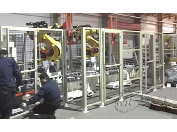 機(jī)器人護(hù)罩是在設(shè)備外圍建立安全范圍防護(hù)措施,以劃分安全范圍,阻隔人或物與設(shè)備直接接觸,起到安全警示作用,常和報(bào)警及斷電設(shè)備配套使用。框架部分使用鋁型材,配合絲網(wǎng)、亞克力、PC等各類板材,通過(guò)鋁型材配件安裝膨脹螺栓連接鋁型材立柱和地面。