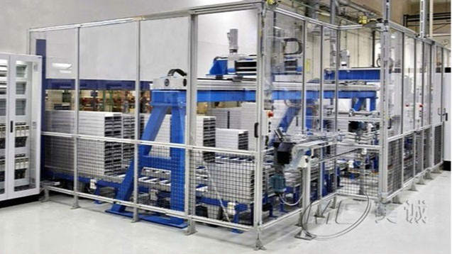 機(jī)械設(shè)備護(hù)欄是在生產(chǎn)流水線外設(shè)立防護(hù)措施,局部或全部建立鋁型材防護(hù)圍欄,以保證人員和設(shè)備安全,部分區(qū)域會安裝門或留出通道便于貨物進(jìn)出和人員檢修。