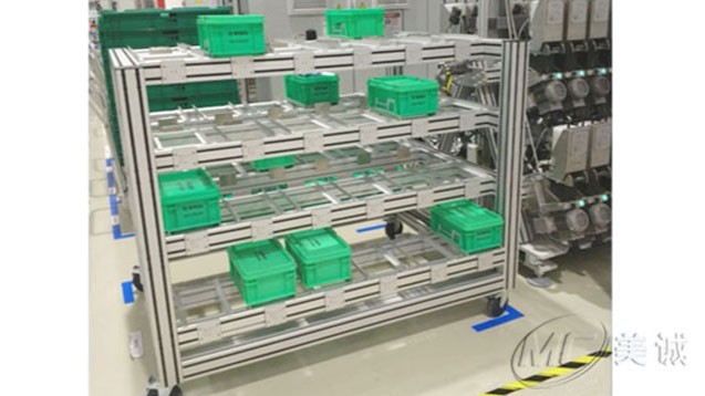 鋁型材零部件儲(chǔ)物架由專(zhuān)用工業(yè)鋁型材作為框架,產(chǎn)品根據(jù)客戶(hù)要求制定,進(jìn)行免費(fèi)設(shè)計(jì)、切割加工,配件連接組成,中間固定夾層擺放軌道,其中底部使用平板蹄腳做支撐。